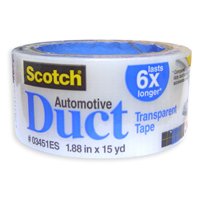 3M 03451 clear duct tape is a transparent all purpose, high adhesive tape that doesn't leave the a messy residue.